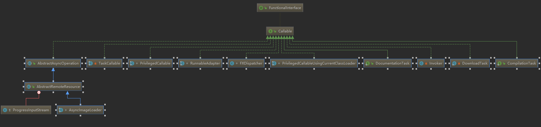 TaskCallable类是javafx.concurrent.Task类的静态内部类,TaskCallable类主要是实现了Callable接口并且被定义为FutureTask的类,并且在这个类中允许我们拦截call()方法来更新task任务的状态。源代码如下所示。